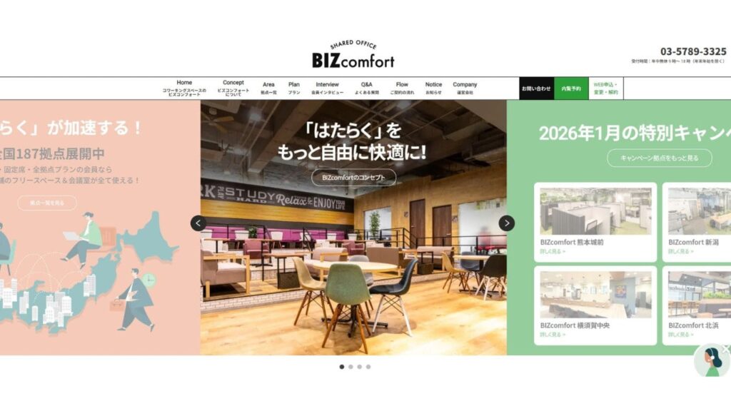 - 固定電話番号取得、会議室利用、ビジネス支援サービスの紹介など事業運営のサポートが幅広い。
