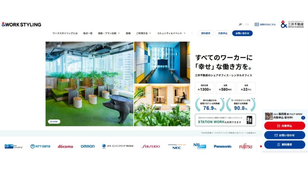 全国主要エリアの拠点と分かりやすい料金体系、運営母体の安心感を兼ね備えた、初めてバーチャルオフィスを利用する方にも選ばれやすいサービスです。