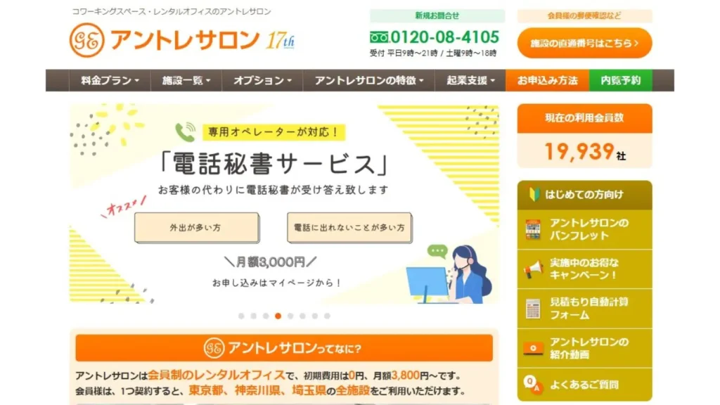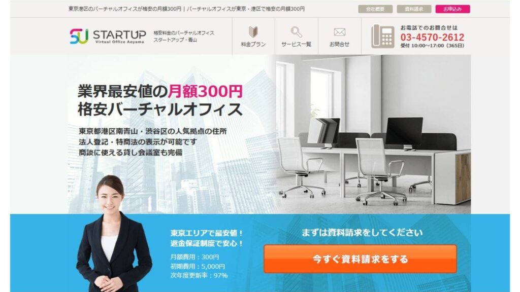 | その他サービス | AI秘書自動応答サービス:月額1,650円(税込)。バーチャルオフィス宛の電話を AI が応答し、要件をメールで通知。着信数 100 件/月まで定額。 固定電話番号・電話転送機能(プランによって付帯またはオプション) 会議室レンタル(支店により可否あり) 来客対応(支店によって来客カウンター対応があることも) 各種割引・特典・提携サービス(会社設立支援、クラウド会計ソフト優待など) |