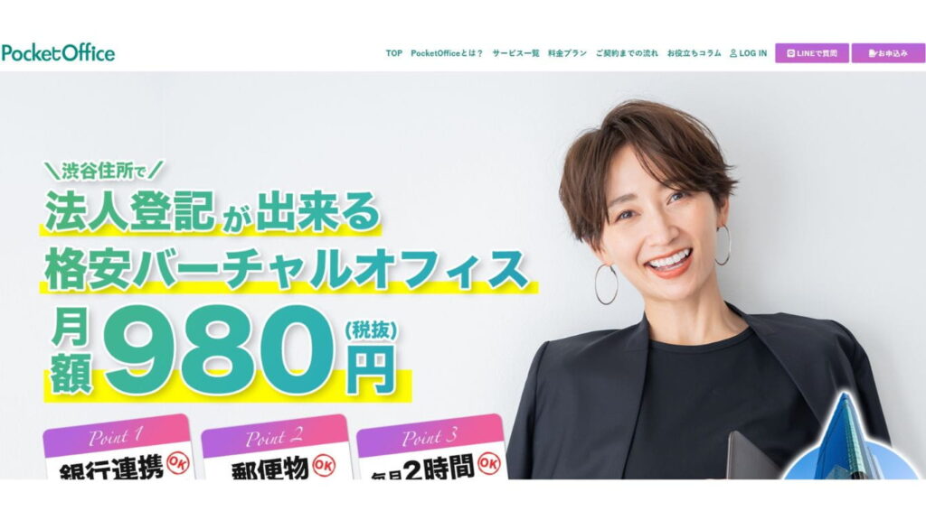 - 格安で法人登記可能/都心一等地の住所が使える(月額990円~)
