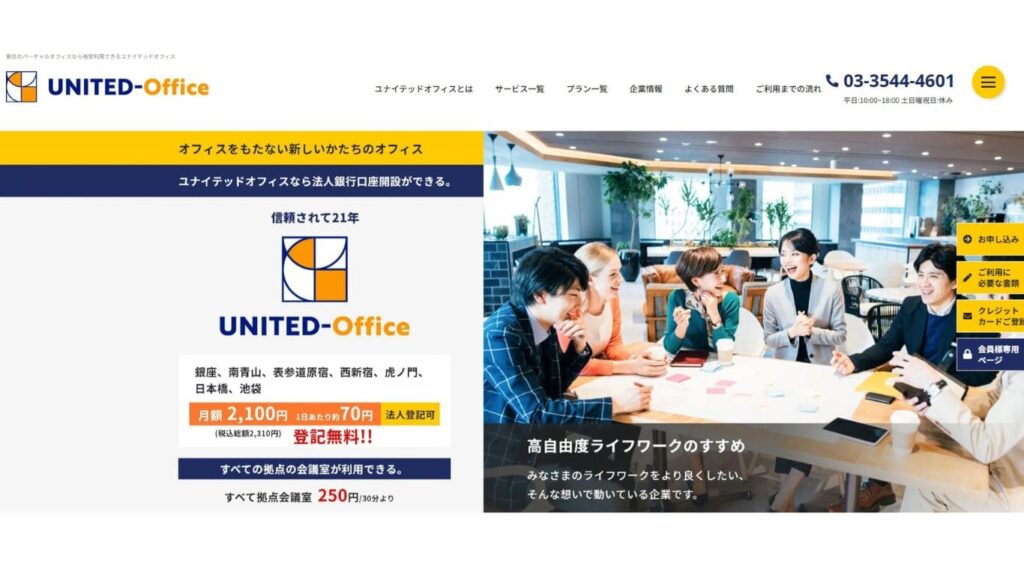 | ユナイテッドオフィス | 初回登録料:5,500円 保証金:10,000円 | 月額2,310円~ | あり(週末に1回転送) | 可 |